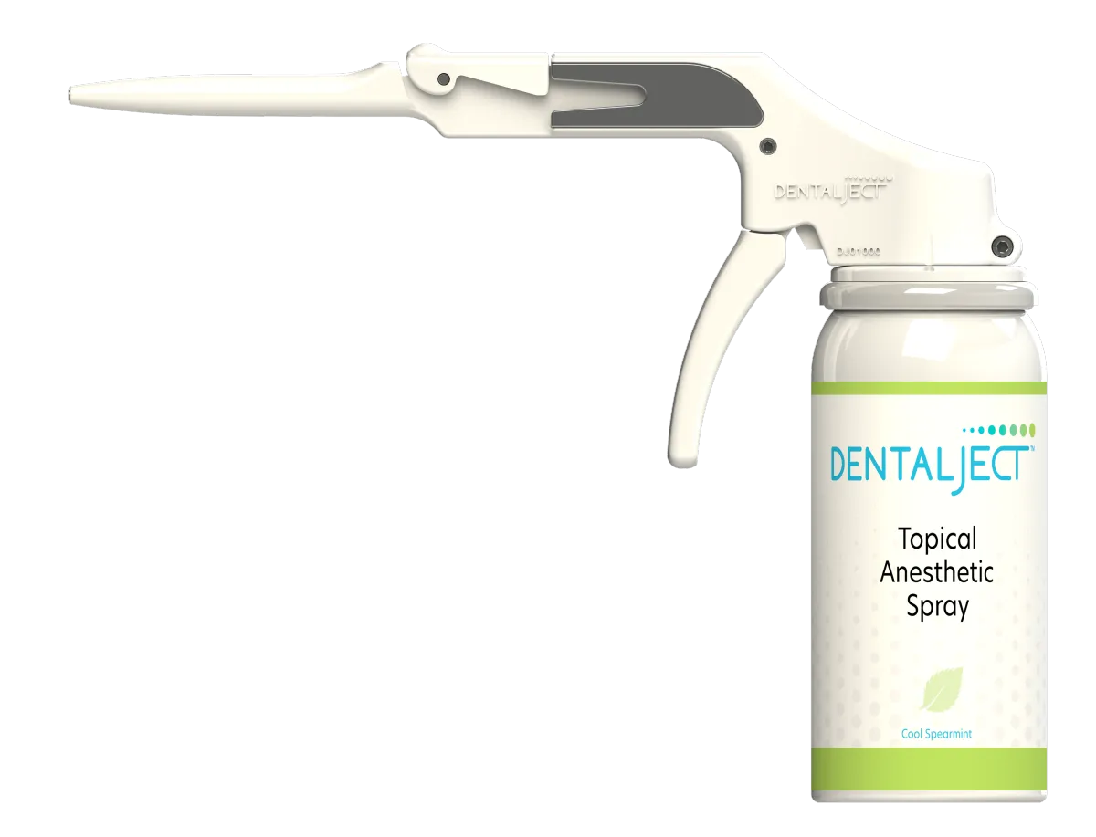 DentalJect delivers a quick, targeted spray of cooling gas that numbs oral tissue within 1-2 seconds.